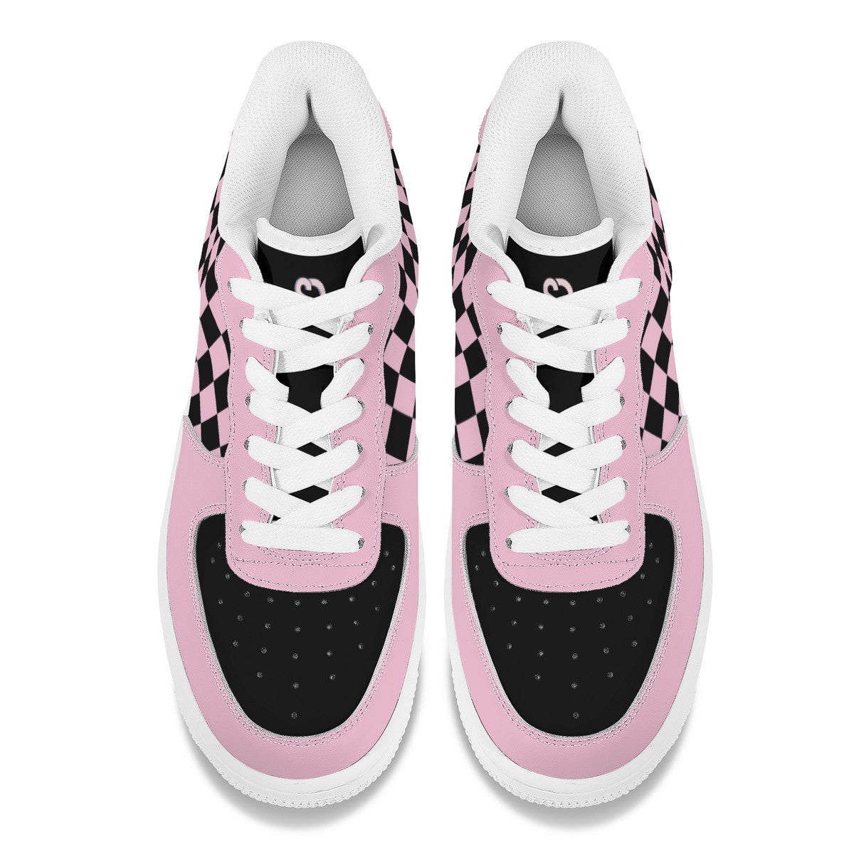 - Style: Low top sneakers with black and pink checkered pattern